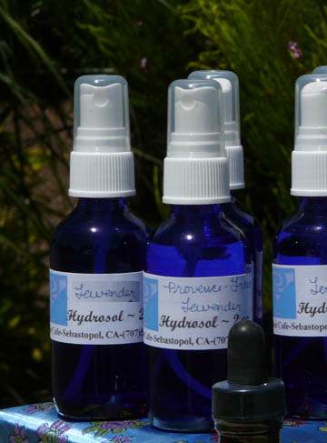 We offer 3 lavender hydrosols; 2 straight up varietals and 1 blend. All are available in 2 oz. cobalt blue bottles with atomizers.