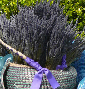 Aromatic Bunches of Lavender harvested and dried at the peak of the growing season to preserve a long lasting scent for years to come. We find the "Grosso" variety is the best and most beautiful for bunching because of it's deeper blue color even after it is dried, the expansive scent and the fact that it's flower buds hold to the stems better than other varieties. These beautiful bunches are wonderful for display in vases and for hanging or laying around the house, allowing their aromatic scent to waft it's soothing nature into your environment. Give them a gentle squeeze from time to time to renew freshness.