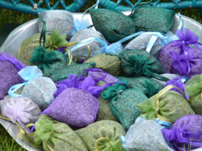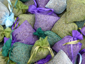 Enchanting Lavender Sachets filled to the brim with lavender buds and held in jewel toned organdy sacks. Many of our customers carry these soothing sachets with them through out the day in their pockets and bags. They find that by holding the sachet to their nose, giving it a gentle squeeze and breathing in the refreshing, centering and stress relieving aroma a beautiful accent to their day. We love the image of a businessman in a suit walking in the business district of San Francisco holding and squeezing our brightly colored Lavender Sachet to bring vision and relief to his day. Our Lavender Sachets are wonderful as a small gift of appreciation, tossed in a drawer or closet and divine tucked under your bed pillows releasing its enchanting scent each time you gently stir.