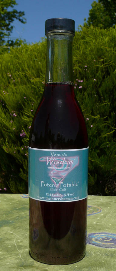 The Elixir Cafe's magical non-alcohol blend of Quince, Apple, Pomegranate, Roses, herbs, flower remedies and gem essences. Enjoy a shot 1/4 oz. at a time. Each Bottle contains 25 to 50 servings depending on serving size. This clarifying elixir de-congests blocked energy and leaves one feeling sparkling again. It removes toxins from the heart chakra and opens one to their eternal nature. Many of our customers refer to our Wisdom of Venus Elixir